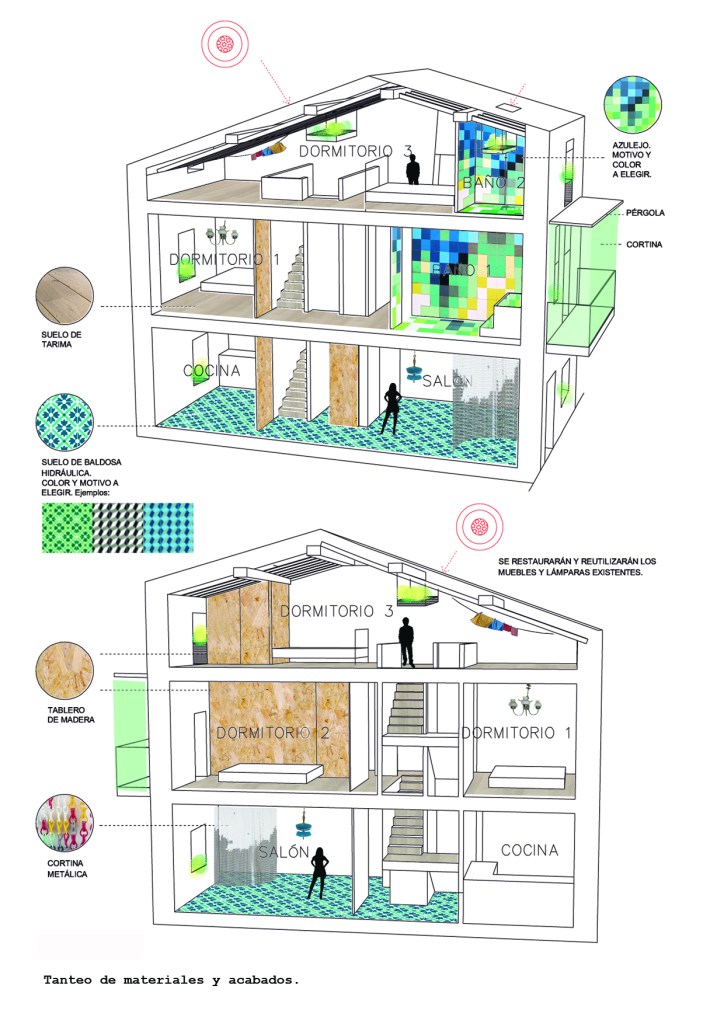 [2012] Reforma de vivienda entre medianeras en Viandar de La Vera, Cáceres, Extremadura. La vivienda donde Rosa nació y vivió en su infancia. Diseñamos una nueva distribución espacial, reformamos paramentos y carpinterías, acondicionamos la fachada y aislamos la cubierta. Reparamos las lámparas antiguas que permanecen en la casa y reutilizamos el mobiliario existente.