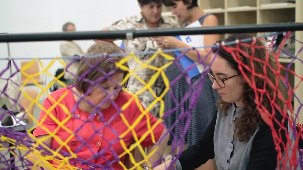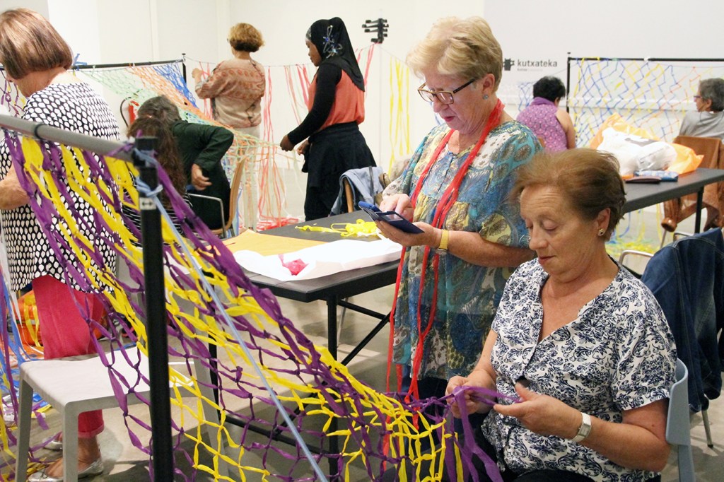 [10-2016] Instalación temporal para las jornadas de encuentro entre asociaciones y ONGs en Kutxa Kultur Tabakalera. Taller Tejiendo Redes. Realizado dentro del Ciclo deTalleres de Sensibilización de Movimiento por La Paz – Euskadi, en colaboración con Kutxa Fundazioa, organizado por Andrea Santamarina.