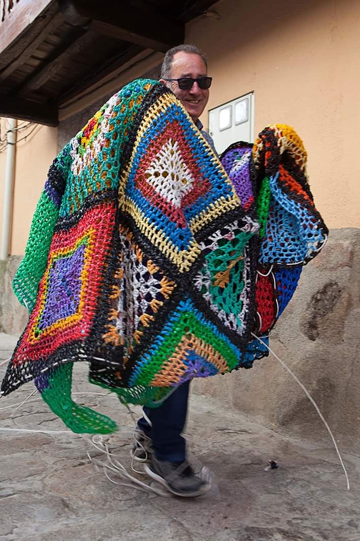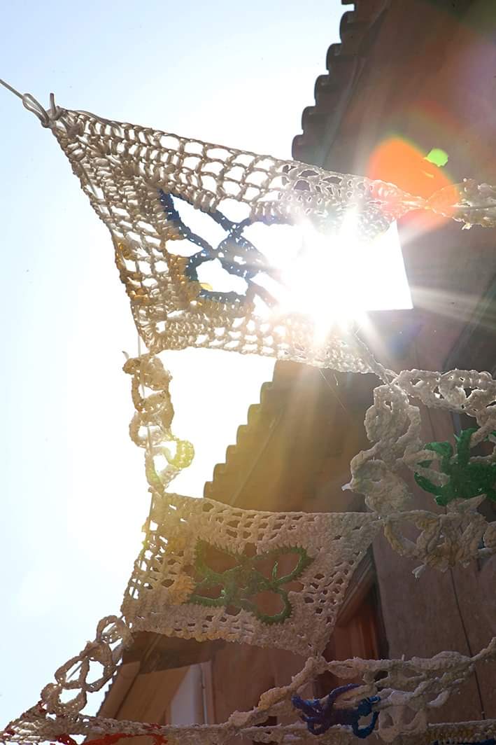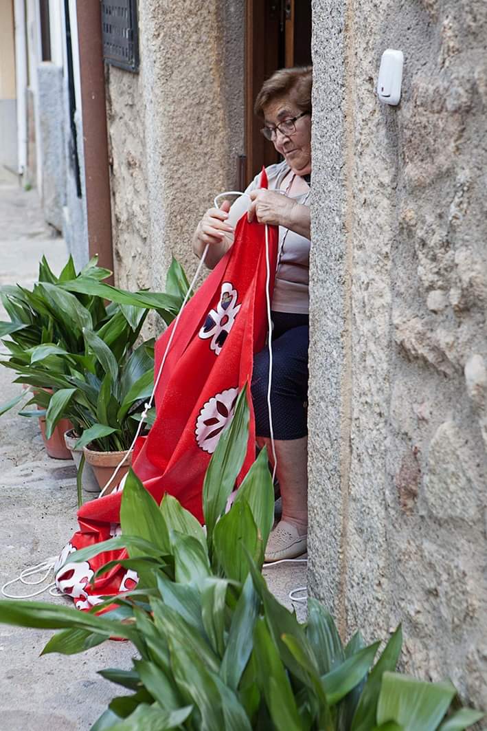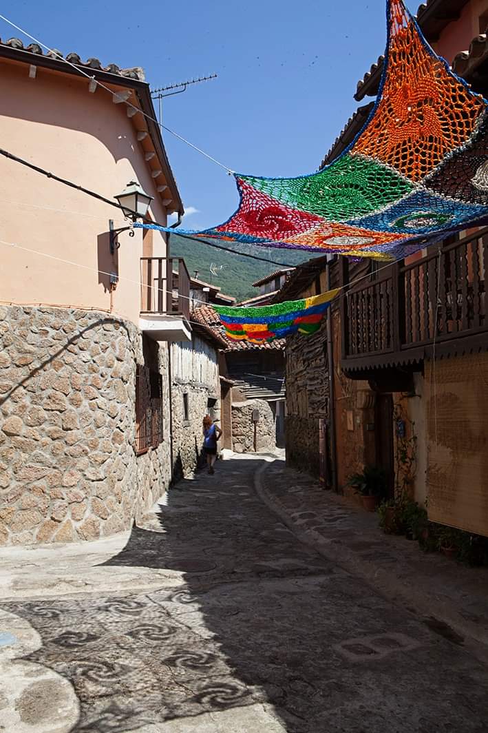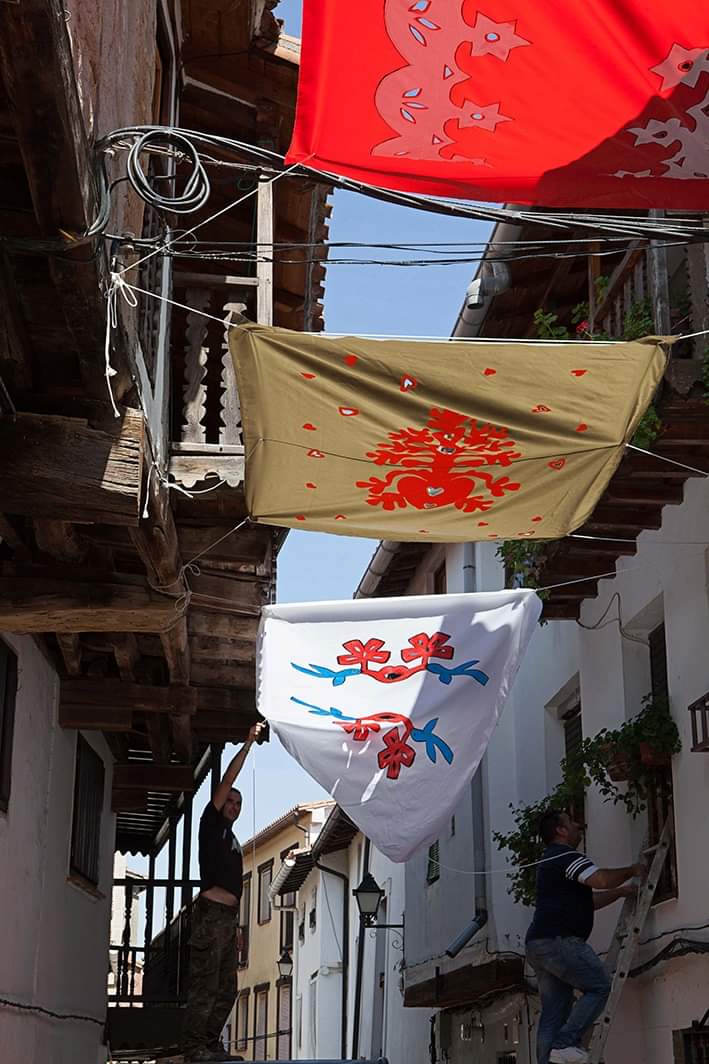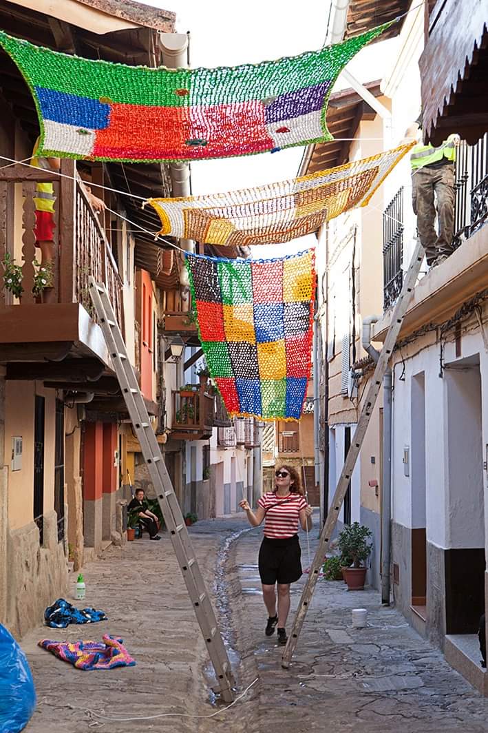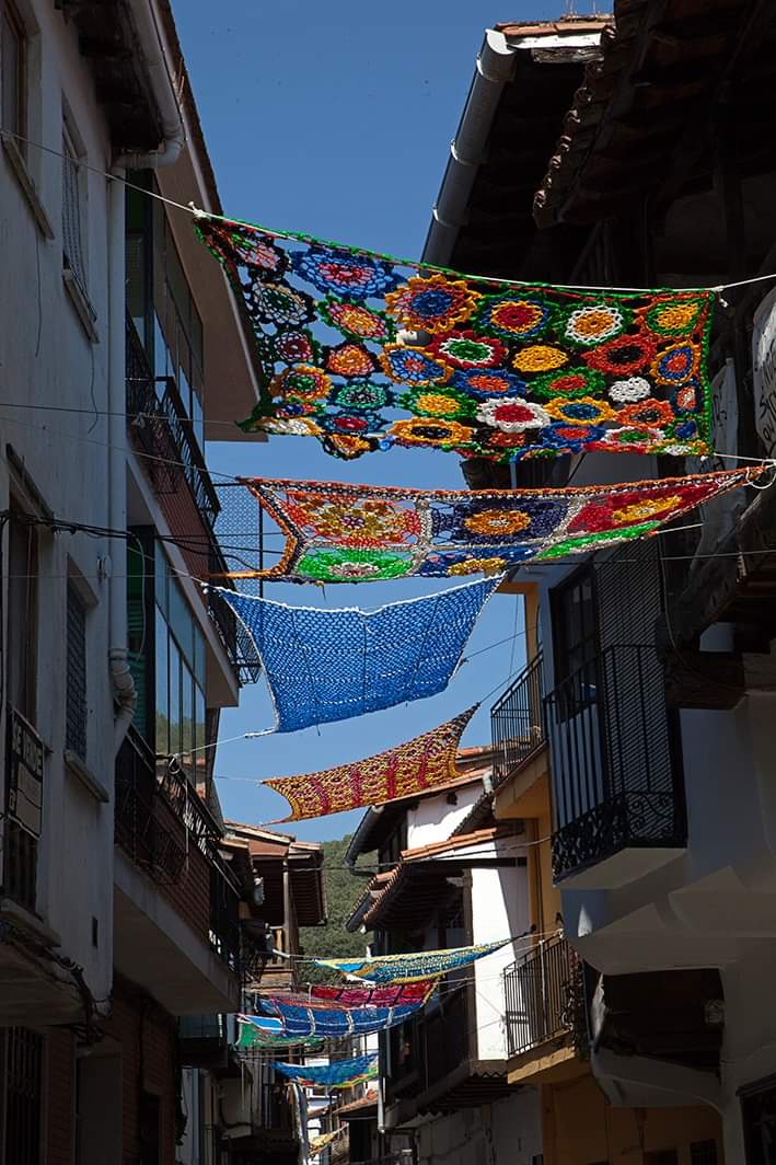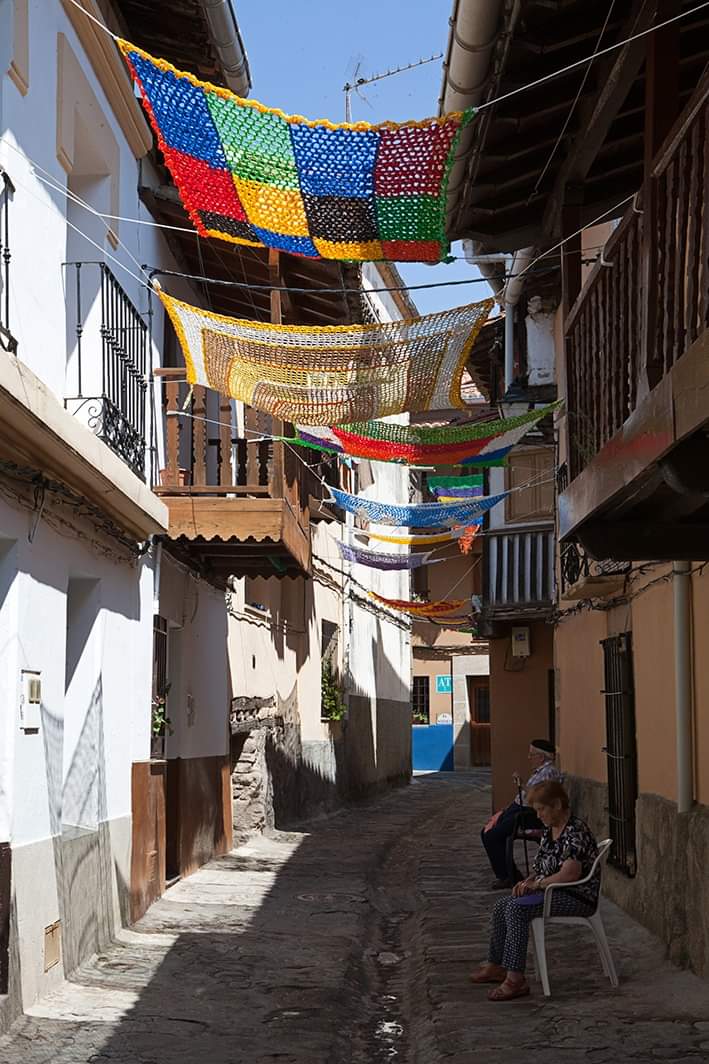 [07/09-2019] Un año más, realizamos la instalación de parasoles tejidos a mano en las calles de Valverde de La Vera.