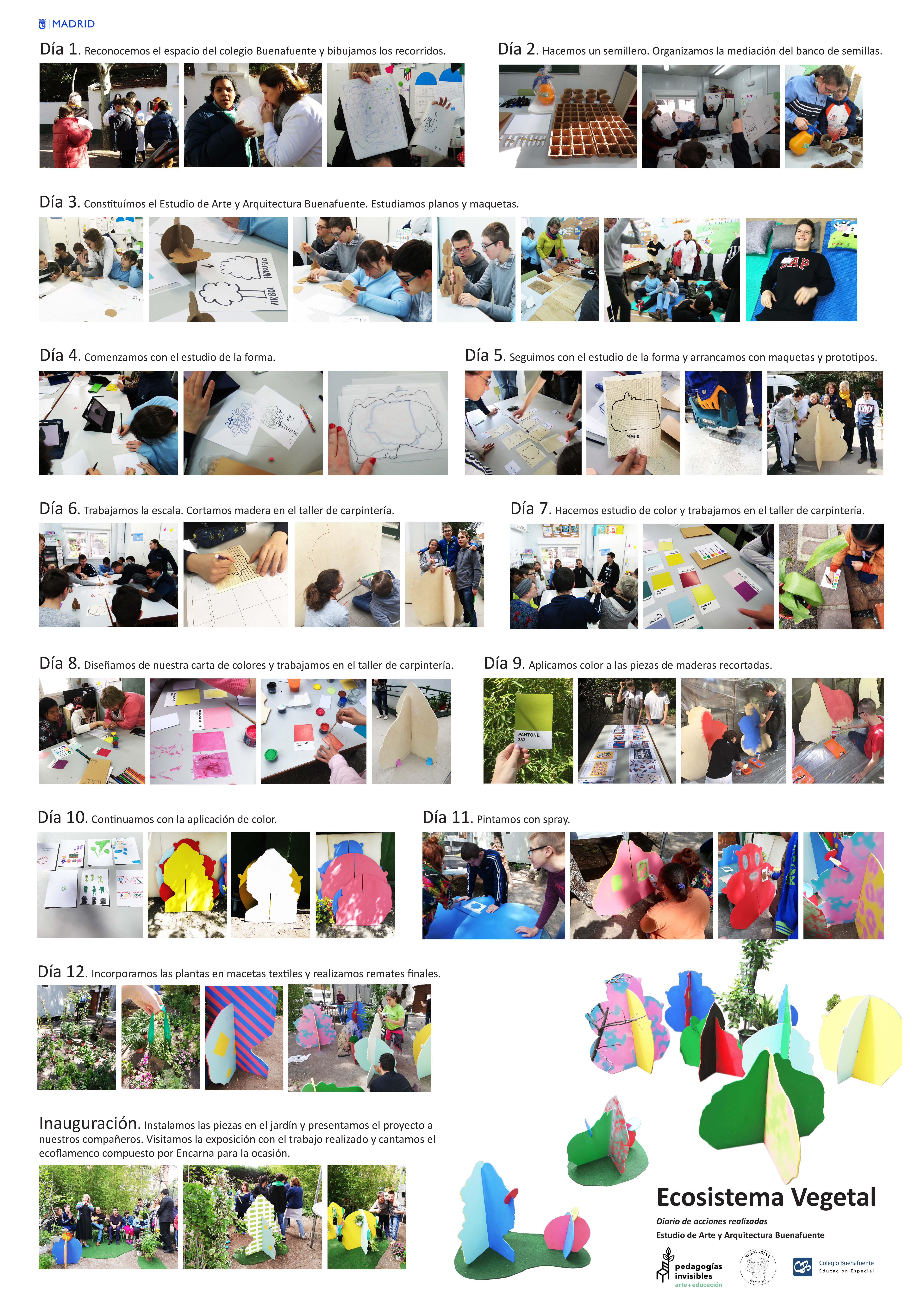 Intervención artístico-pedagógica de un espacio del Colegio de Educación Especial Buenafuente, destinado únicamente a actividades de recreo, para generar un espacio vegetal-arquitectónico de carácter pedagógico. El proyecto se desarrolla con el módulo del programa de transición a la vida adulta (PTVA) del mismo centro. Este programa se dirige a alumnos de entre 16 y 20 años escolarizados en centros de educación especial en etapa postobligatoria. Se añaden al currículum oficial componentes de formación laboral y se desarrollan planes educativos personalizados.