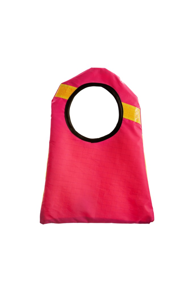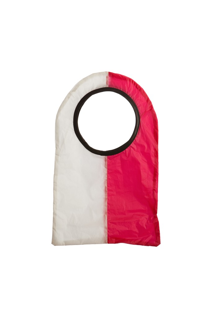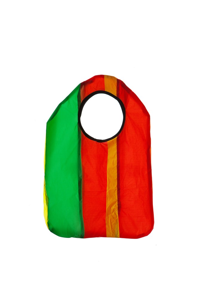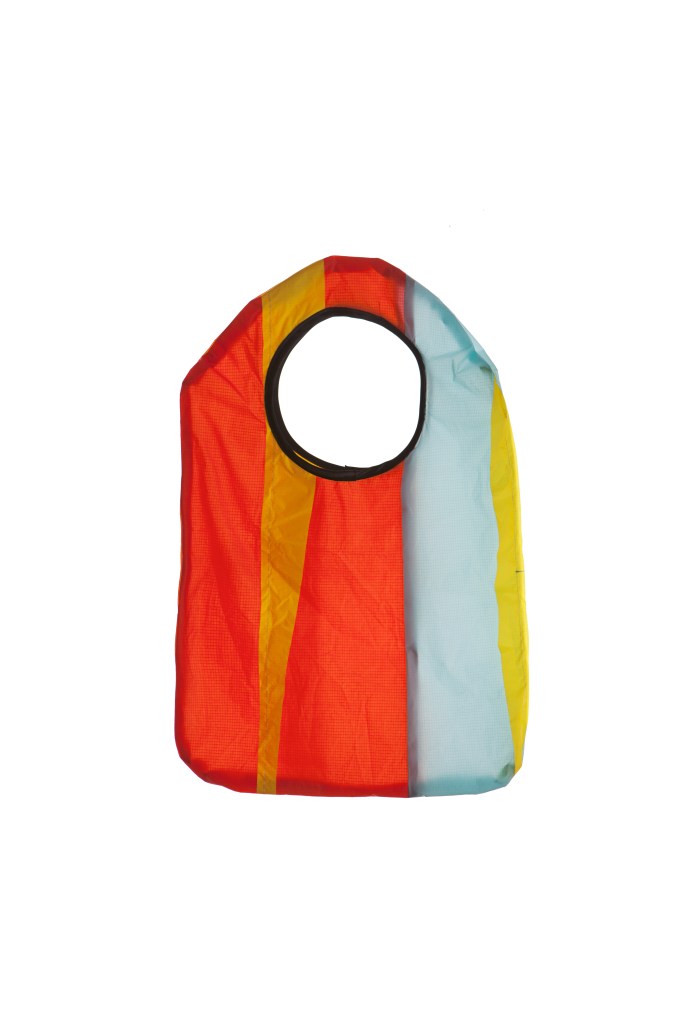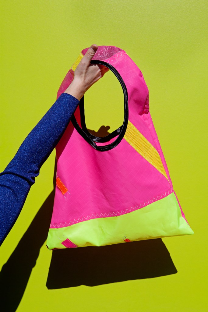 Bolsas confeccionadas con tela de nailon reutilizada de parapentes o velas de windsurf en desuso a los que se les da una nueva vida. Cada edición es limitada, según el tamaño del parapente o la vela de origen, y su diseño varía en función del patrón de la pieza original, sus colores y estampados.