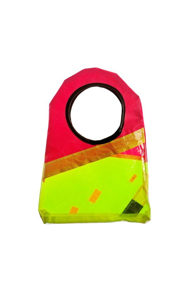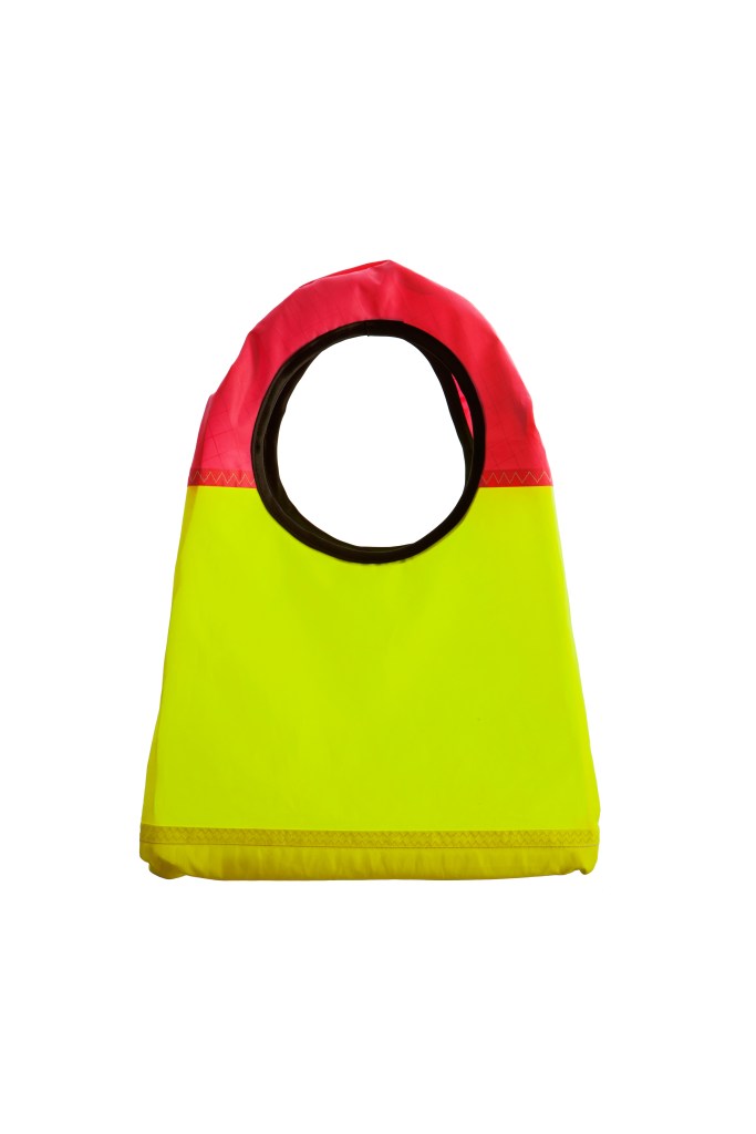 Piezas únicas con tejido de nailon ripstop extra fuerte en colores flúor. Con zonas transparentes. A partir de una vela de windsurf con rotos.