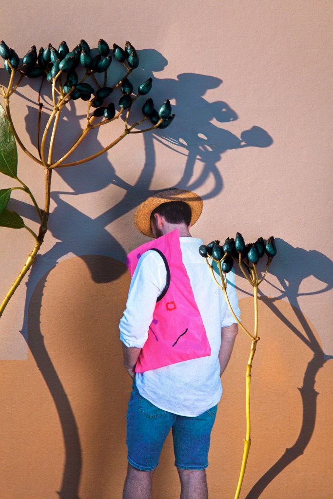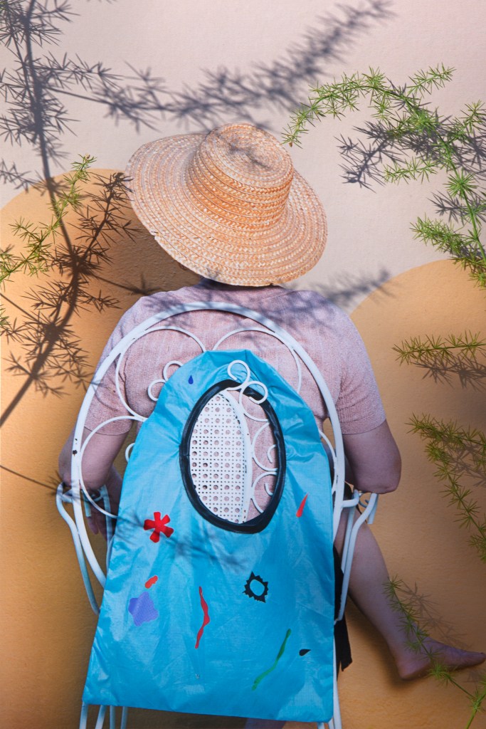 Un collage distinto en cada bolsa, pequeños paisajes portátiles. Con motivos inspirados en los ornamentos tipo «picao» de la Vera en Extremadura. Con recortes de parches para la reparación de rotos en parapentes. Plantas y flores silvestres: alhelíes, cañas, cardos y claveles, habas y malvas, margaritas, hojas de mastuerzo, tréboles y zarzas que crecen de manera natural sin la intervención del ser humano.