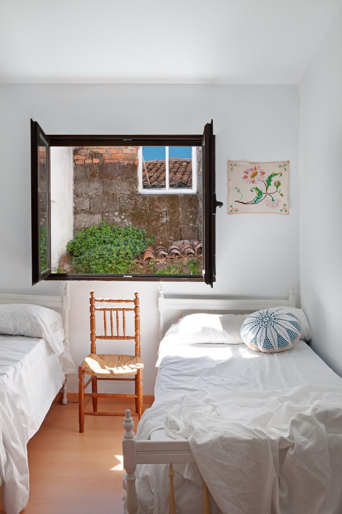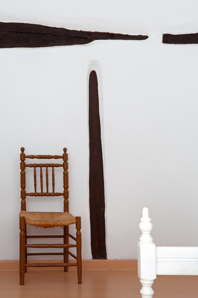Desde la sala de estar puede verse la ladera opuesta del Valle. Una de las pequeñas fincas de cerezos que cultivaba la familia de la casa está a tan solo 15 minuntos a pie. Un espacio al aire libre que formaba parte del día a día de sus vidas, donde cuidaban de los árboles y de la tierra. En el mes de abril el paisaje se transforma al blanco del cerezo en flor. Después llegará la lluvia de pétalos. Más adelante la cereza madura, y de nuevo comenzará el ciclo.