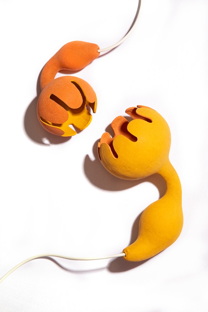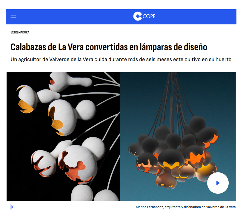 Las calabazas de Harvesting Lamps han sido cultivadas durante cerca de seis meses por un agricultor en su huerto del paisaje de la Vera en la Sierra de Gredos, y las ha secado al aire durante algunos meses más. Cáscaras orgánicas, como de madera, ligeras y resistentes. Con una piel exterior tersa e hidrófuga y una pulpa interior que al secarse mantienen su forma estable durante años. Con acabados de color biodegradables que no emiten Compuestos Orgánicos Volátiles (COV). Sus componentes tecnológicos se pueden separar para facilitar su reparación y su apropiado reciclaje.