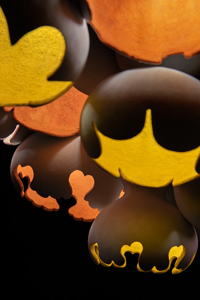Harvesting Lamps están talladas a mano. Como se hace en múltiples tradiciones tras las cosechas de otoño, realizando objetos de temporada que forman parte parte de fábulas, cuentos y leyendas. Las Jack-o’-lantern en Irlanda, las calabazas de Halloween en América del Norte, las guéne – linternas con remolachas – en Francia, las feralia lucem en Italia, y muchas otras a lo largo de la historia en diferentes lugares del planeta. Elementos que colaboran en ritos de cambio de estación. Faroles que median entre la luz y la oscuridad.